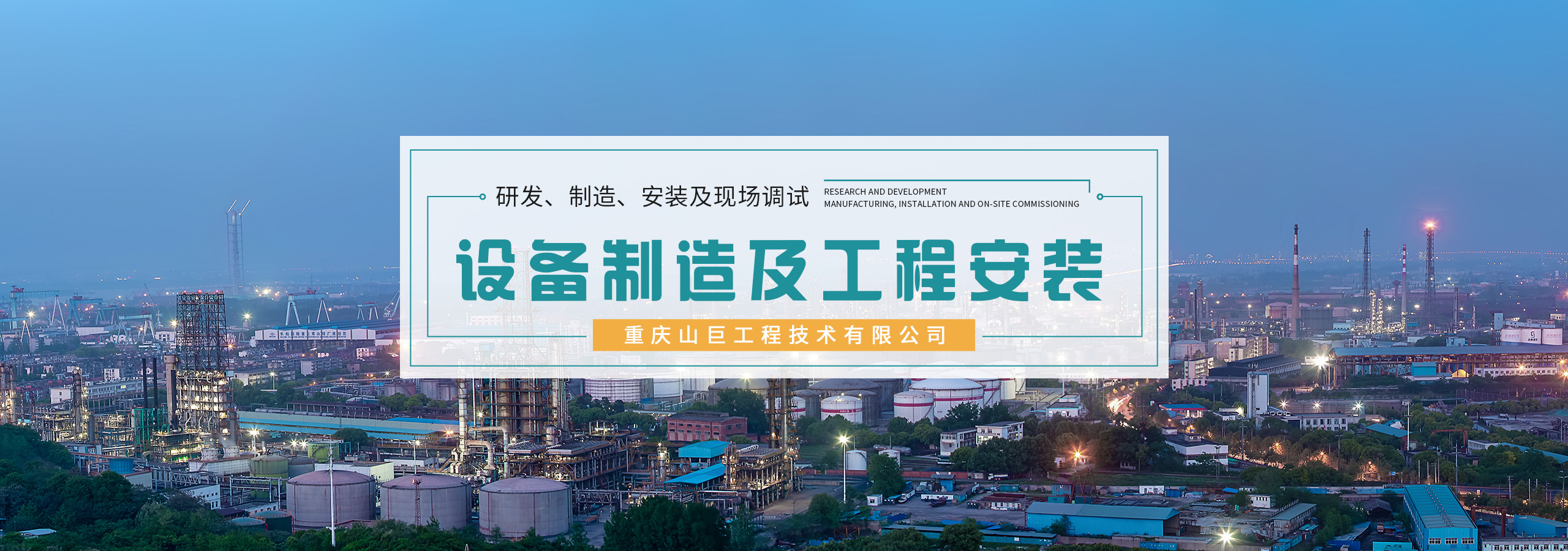重慶山巨工程技術有限公司司位于渝北區中渝廣場,辦公面積500㎡,負責化工工藝工程技術開發,技術轉讓;下設獨立分公司:重慶景賢科技有限公司-負責化工工藝及設備計算軟件開發和技術轉讓、重慶山巨化工機械股份有限公司-負責設備制造及工程安裝、重慶山巨化工機械成套設備有限公司;重慶山巨化工機械成套設備有限公司位于合川區草街鎮信息安全產業城,為10000㎡的標準廠房,配置有大批生產壓力容器的專用設備、工程安裝設備、同時建有一個化工工藝實驗室-配有小試、中試裝置及檢驗設備。